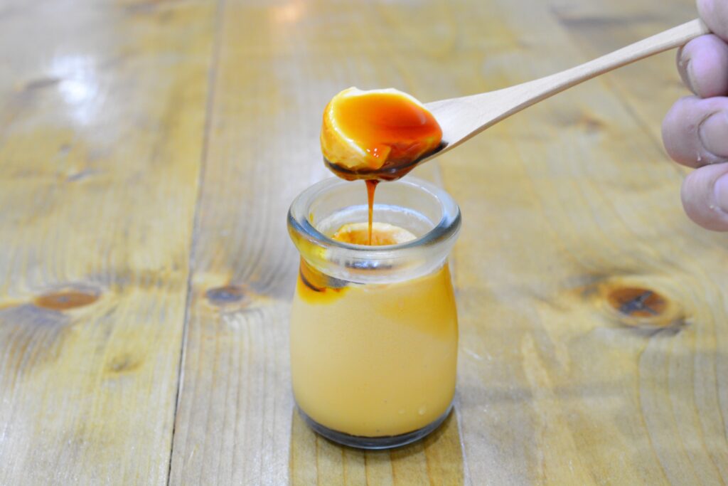 そのまま食べれば、素材のまろやかさを堪能でき、カラメルソースをかけると甘さと香ばしさが加わって、まったく別の表情に。